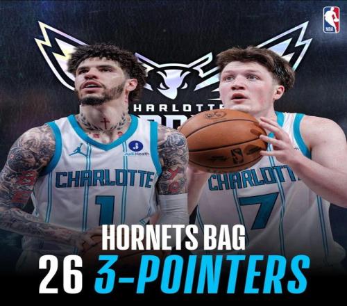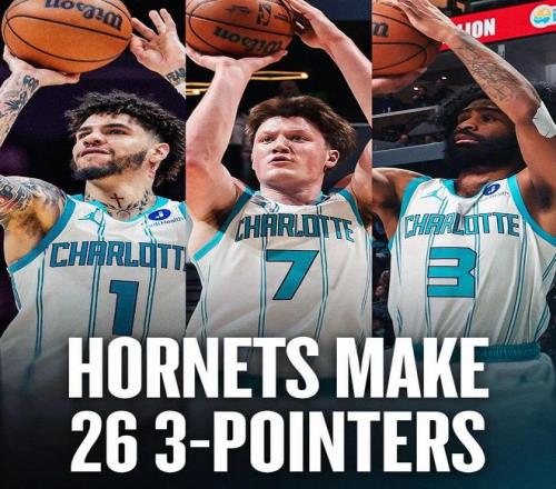 ——26记三分追平了黄蜂的队史单场三分纪录,而且此前的纪录就发生在10天前,面对马刺,黄蜂单场三分46中26